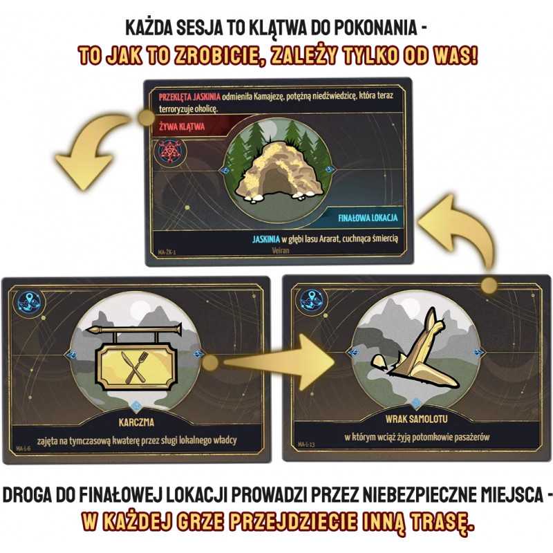 „Saga” skupia się wokół budowania większego, spójniejszego świata. Znajdziecie w niej karty Epilogów, które pozwolą wam dłużej grać tą samą postacią, po to żeby sprawdzić jak skończy się jej historia. Karty Odpoczynków dadzą Wam wytchnienie między lokacjami i pozwolą spotkać ciekawe postacie ze świata gry. Z kolei Osiągnięcia to karty, które otrzymacie po pokonaniu konkretnej Żywej Klątwy – dzięki nim będziecie dosłownie mogli uratować całą krainę Veiranu od wszystkich Żywych Klątw i spotkacie efekty swoich działań w późniejszych rozgrywkach.