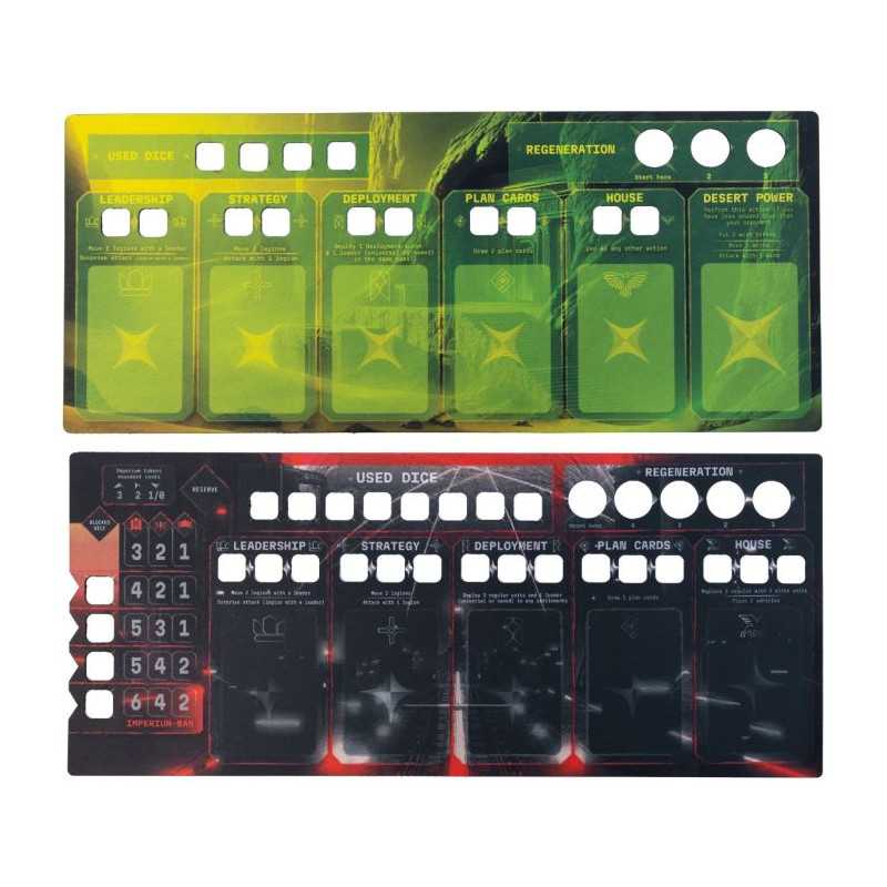 Planszetka Atrydów wyróżnia się elegancką estetyką, która oddaje charakter tej szlachetnej rodziny – ich honor, determinację i strategię w walce o dominację nad Arrakis. Z drugiej strony, planszetka Harkonnenów oddaje brutalność i bezwzględność ich metod, w pełni oddając surowość i siłę tej frakcji. Dzięki wysokiej jakości grafice oraz odpowiednim oznaczeniom, gracze mogą poczuć się, jakby faktycznie stali na czele tych potężnych domów w walce o przyprawę.