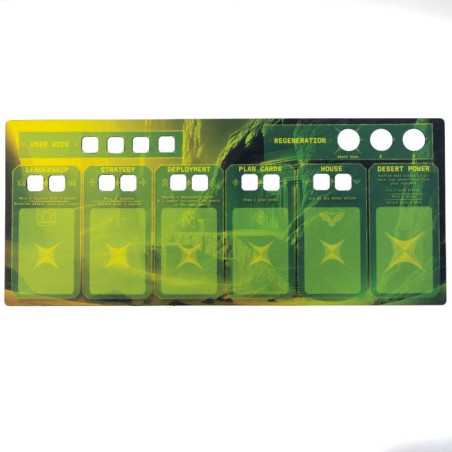 Zanurz się jeszcze głębiej w epicką walkę o planetę Arrakis dzięki zestawowi planszetek do gry Diuna: Wojna o Arrakis. Zestaw ten zawiera dwie unikalne planszetki, które reprezentują dwie kluczowe frakcje w uniwersum Diuny – Atrydów oraz Harkonnenów. Planszetka Atrydów o wymiarach 450x190 mm oraz planszetka Harkonnenów o nieco większych wymiarach 455x195 mm to maty, które gwarantują wysoką jakość wykonania i w pełni oddają klimat i ducha rywalizacji między tymi potężnymi rodami.