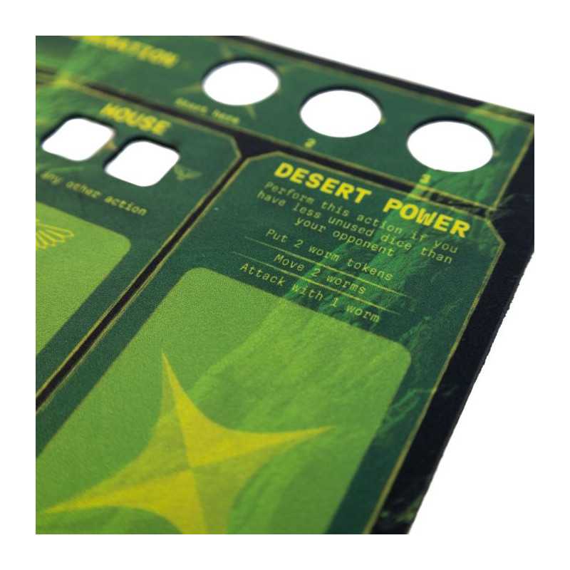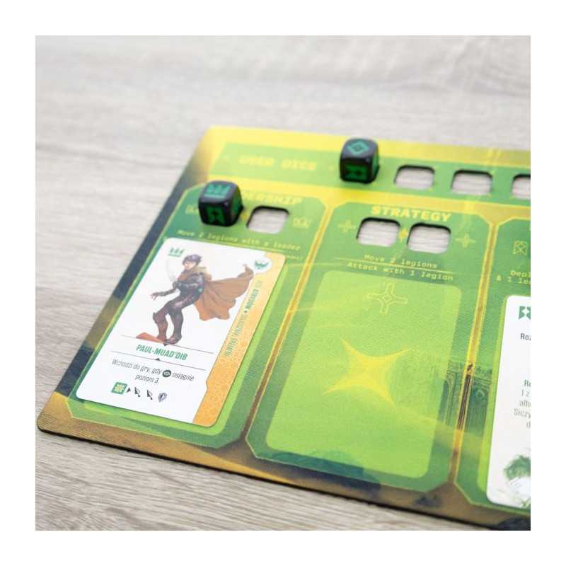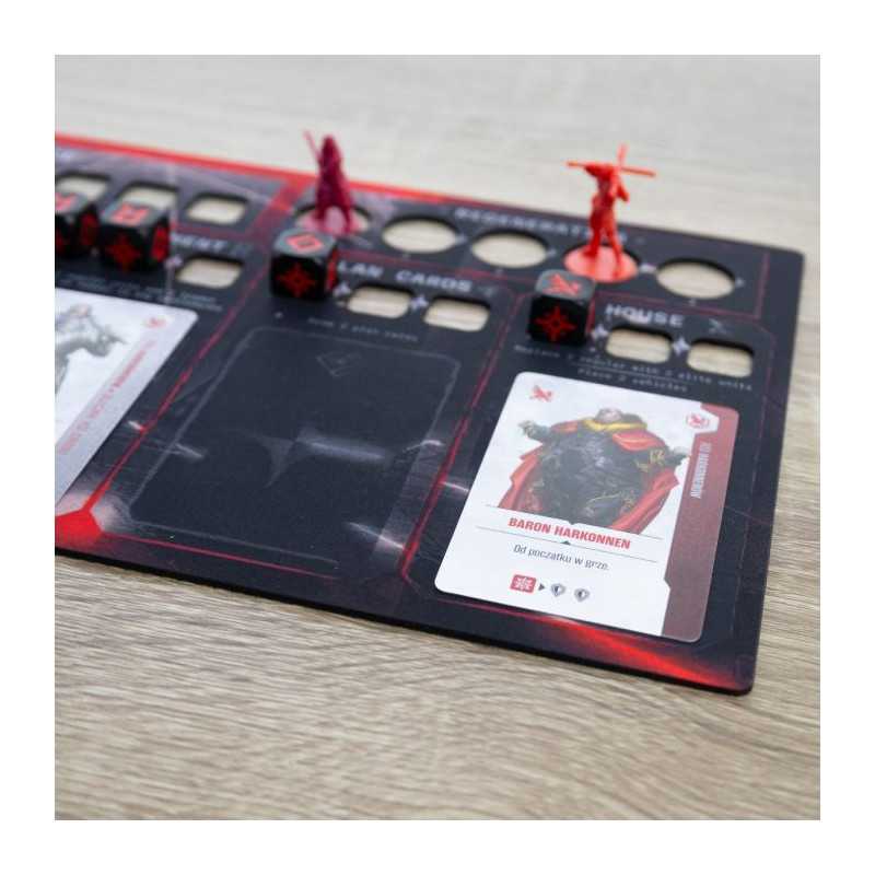 Każda z planszetek została zaprojektowana z myślą o maksymalnej funkcjonalności i wygodzie graczy. Wyraźnie zaznaczone sekcje pozwalają na lepsze zarządzanie zasobami, wojskami oraz technologiami, które są kluczowe dla strategii w Diunie: Wojnie o Arrakis. Układ poszczególnych elementów jest intuicyjny, co pozwala graczom szybko i skutecznie podejmować decyzje, eliminując zbędny chaos na stole. Zarówno planszetka Atrydów, jak i Harkonnenów uwzględniają specyficzne mechaniki każdej z frakcji, oferując różne podejścia do rozgrywki.