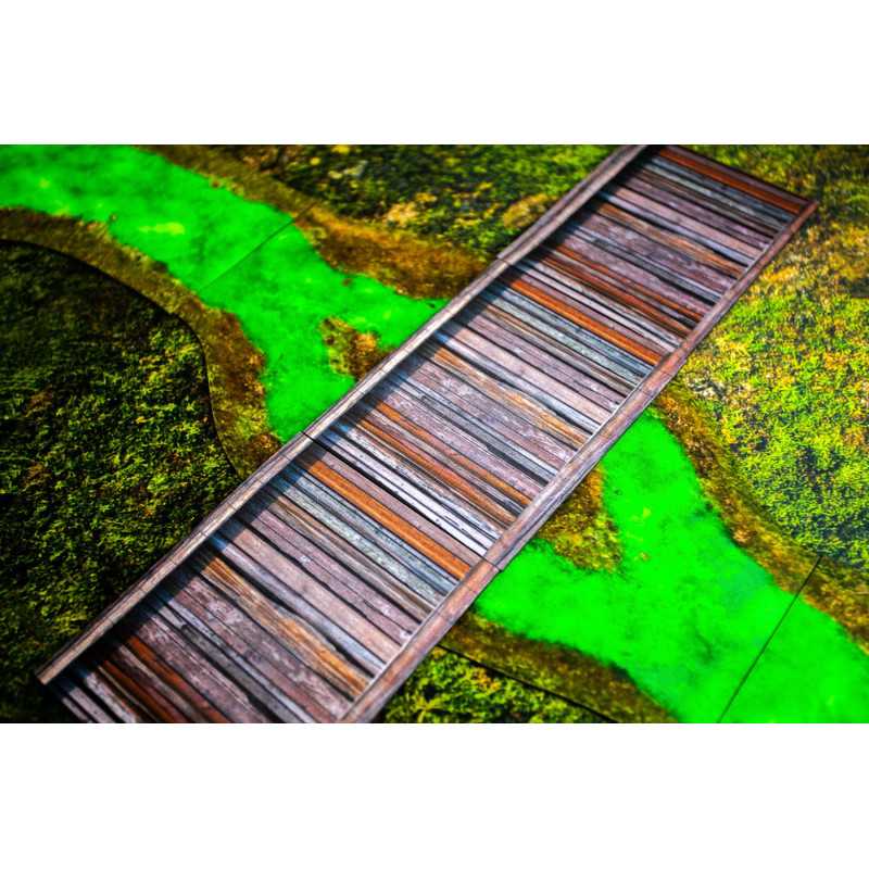 Wysokiej jakości gumowe tereny 2D z antypoślizgową powierzchnią. Łączą w sobie funkcjonalność klasycznych terenów oraz komfort stawiania figurek na płaskich powierzchniach. Zestaw składa się z trzech sztuk mostów.