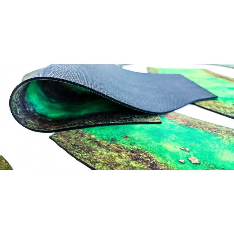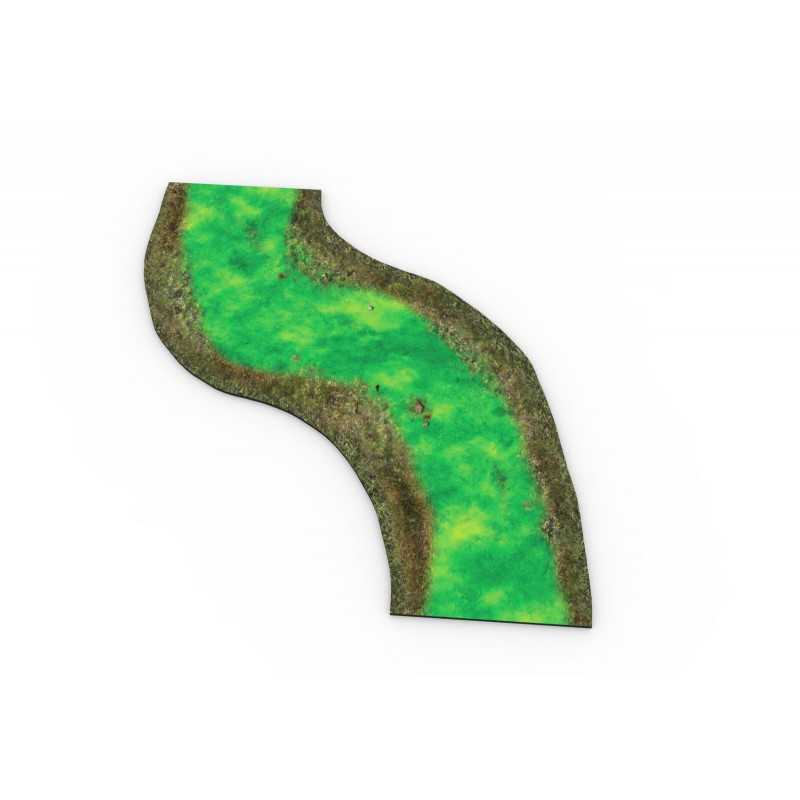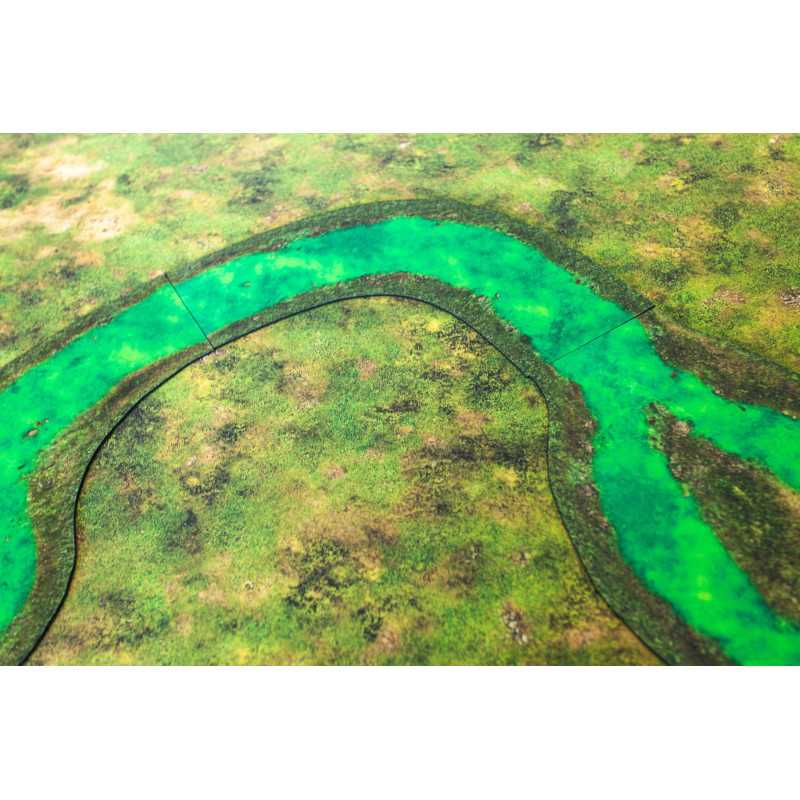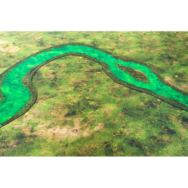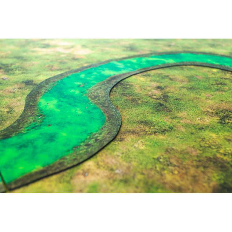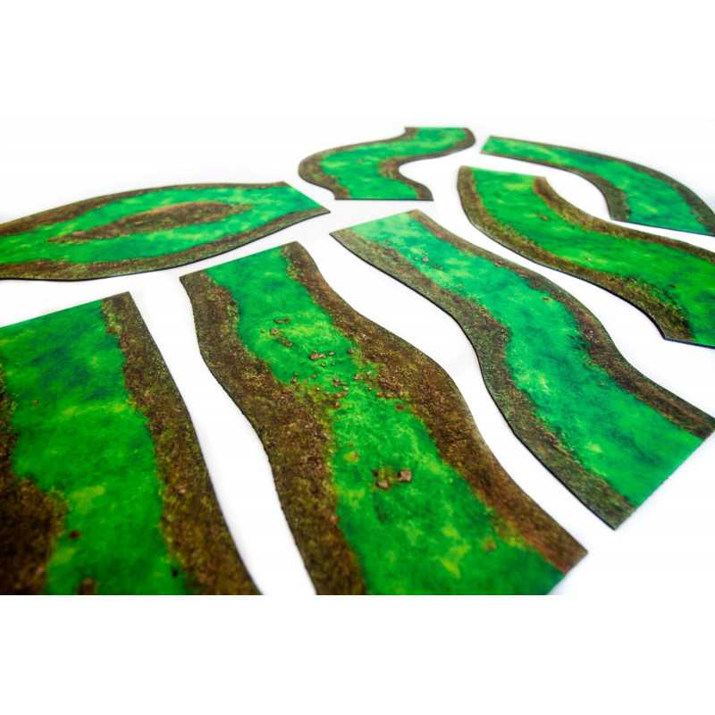 Modularne rzeki 2D wykonane z najwyższej jakości gumy. Moduły mające 12” można dowolnie łączyć tak, by przykryły całą długość standardowych stołów do gier figurkowych.