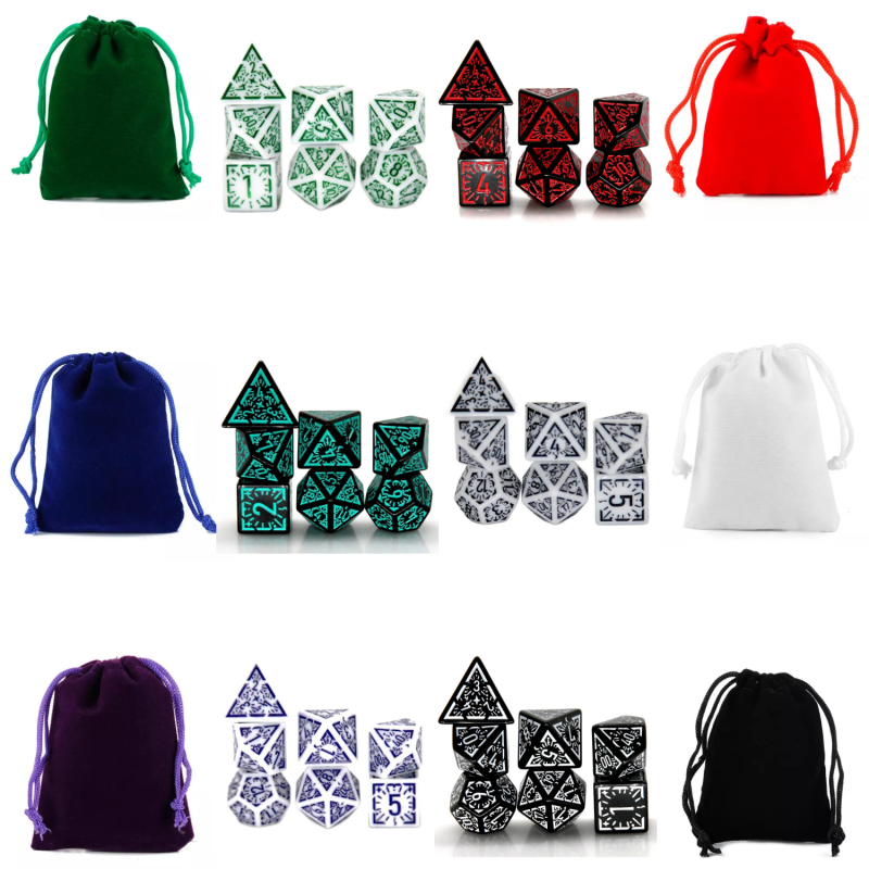 Wybierz komplet kości z tacką do rzucania, aksamitnym woreczkiem pod kolor, monetami, albo zmywalną matą. Obdaruj kogoś zestawem nietypowych kostek, które świecą w ciemności lub całym niezbędnikiem gadżetów RPG – w sam raz dla początkującego i zaawansowanego gracza!