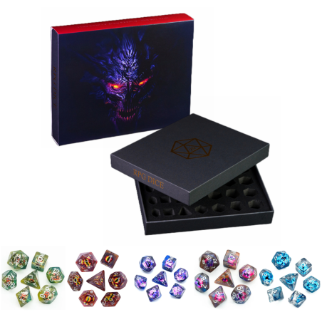 Wybierz komplet kości z tacką do rzucania, aksamitnym woreczkiem pod kolor, monetami, albo zmywalną matą. Obdaruj kogoś zestawem nietypowych kostek, które świecą w ciemności lub całym niezbędnikiem gadżetów RPG – w sam raz dla początkującego i zaawansowanego gracza!