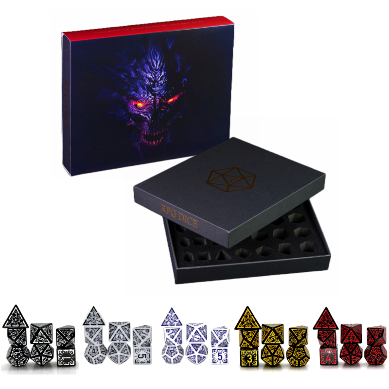 Wybierz komplet kości z tacką do rzucania, aksamitnym woreczkiem pod kolor, monetami, albo zmywalną matą. Obdaruj kogoś zestawem nietypowych kostek, które świecą w ciemności lub całym niezbędnikiem gadżetów RPG – w sam raz dla początkującego i zaawansowanego gracza!