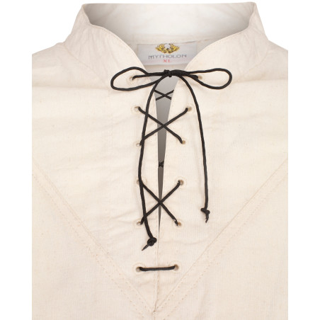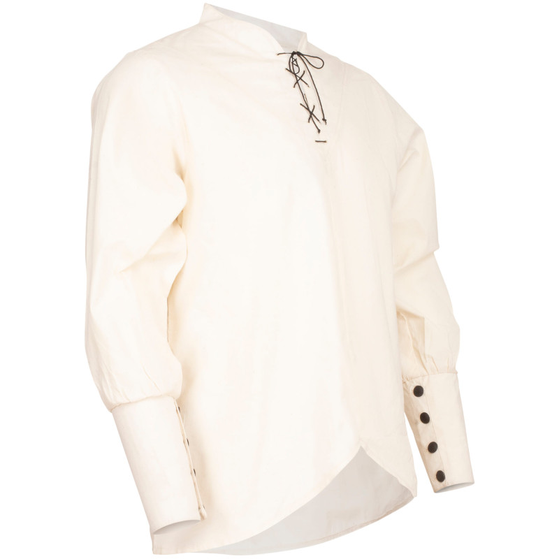 Koszula "Arantir" z naszej serii "Everlight" z kołnierzem stójkowym i zapinanymi rękawami to idealna odzież wierzchnia do przedstawiania postaci szlacheckich i wysokiej rangi.