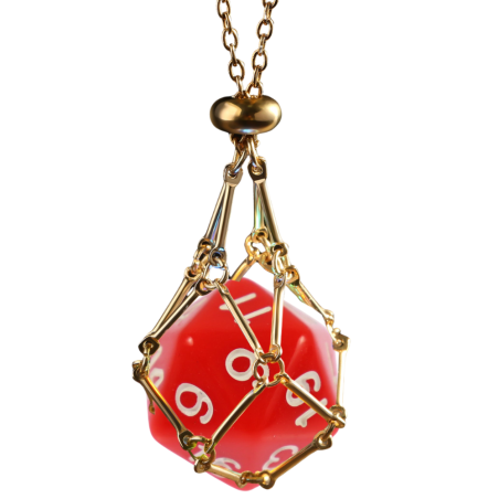 Naszyjnik na K20 to wyjątkowy dodatek, który łączy funkcjonalność z elegancją, stając się idealnym wyborem dla każdego fana gier fabularnych. Zawieszona na subtelnym łańcuszku, metalowa klatka skrywa w sobie miejsce na kość k20. Jego solidna konstrukcja i unikalny design sprawiają, że naszyjnik jest nie tylko praktycznym, ale i stylowym akcesorium, które doskonale oddaje pasję do gier fabularnych. To elegancki sposób na zawsze mieć przy sobie kostkę!