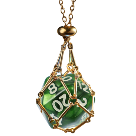 Naszyjnik na K20 to wyjątkowy dodatek, który łączy funkcjonalność z elegancją, stając się idealnym wyborem dla każdego fana gier fabularnych. Zawieszona na subtelnym łańcuszku, metalowa klatka skrywa w sobie miejsce na kość k20. Jego solidna konstrukcja i unikalny design sprawiają, że naszyjnik jest nie tylko praktycznym, ale i stylowym akcesorium, które doskonale oddaje pasję do gier fabularnych. To elegancki sposób na zawsze mieć przy sobie kostkę!