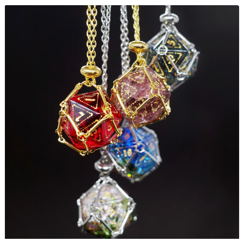 Naszyjnik na K20 to wyjątkowy dodatek, który łączy funkcjonalność z elegancją, stając się idealnym wyborem dla każdego fana gier fabularnych. Zawieszona na subtelnym łańcuszku, metalowa klatka skrywa w sobie miejsce na kość k20. Jego solidna konstrukcja i unikalny design sprawiają, że naszyjnik jest nie tylko praktycznym, ale i stylowym akcesorium, które doskonale oddaje pasję do gier fabularnych. To elegancki sposób na zawsze mieć przy sobie kostkę!