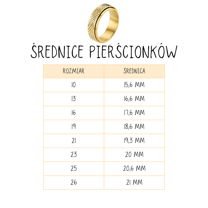 Stylowy i funkcjonalny pierścionek wykonany z trwałego metalu. Posiada ruchomą, obrotową część, która działa antystresowo – idealny do dyskretnego zajęcia dłoni i redukcji napięcia. Minimalistyczny design sprawia, że pasuje do każdego stylu, zarówno na co dzień, jak i na specjalne okazje.