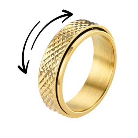 Stylowy i funkcjonalny pierścionek wykonany z trwałego metalu. Posiada ruchomą, obrotową część, która działa antystresowo – idealny do dyskretnego zajęcia dłoni i redukcji napięcia. Minimalistyczny design sprawia, że pasuje do każdego stylu, zarówno na co dzień, jak i na specjalne okazje.