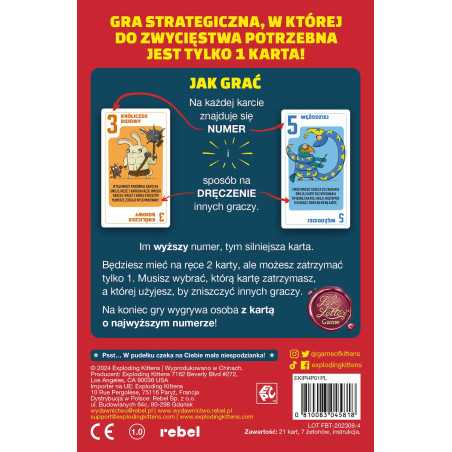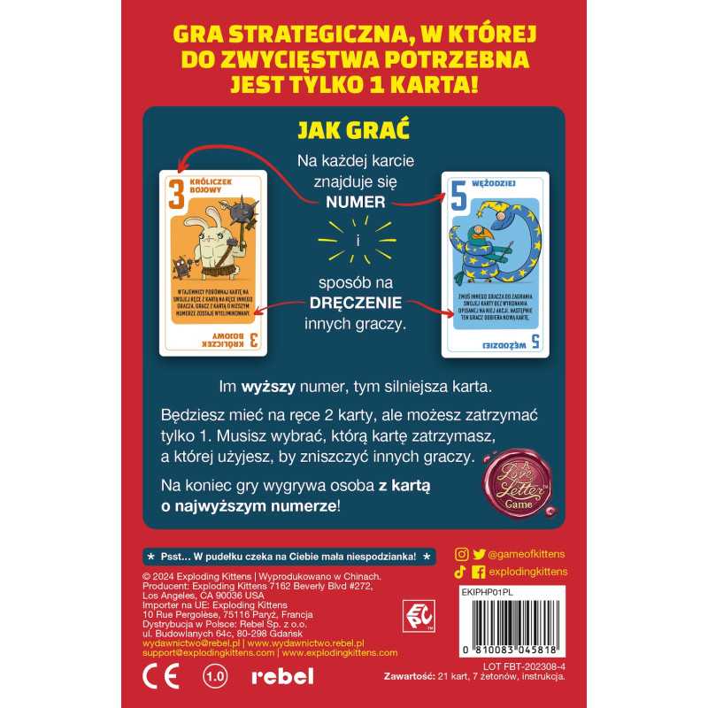 Co wyjdzie z połączenia Listu miłosnego i Eksplodujących Kotków? Chaos, brudne zagrywki i nieustanne poszukiwanie zemsty! Zwierzaki żądne władzy to zwodniczo prosta gra karciana, w której musimy znaleźć równowagę między utrudnianiem życia przeciwnikom a chęcią zdobycia najpotężniejszej karty. Wszystko sprowadza się do jednej zasady: zwycięży osoba, która skończy z kartą o najwyższym numerze!